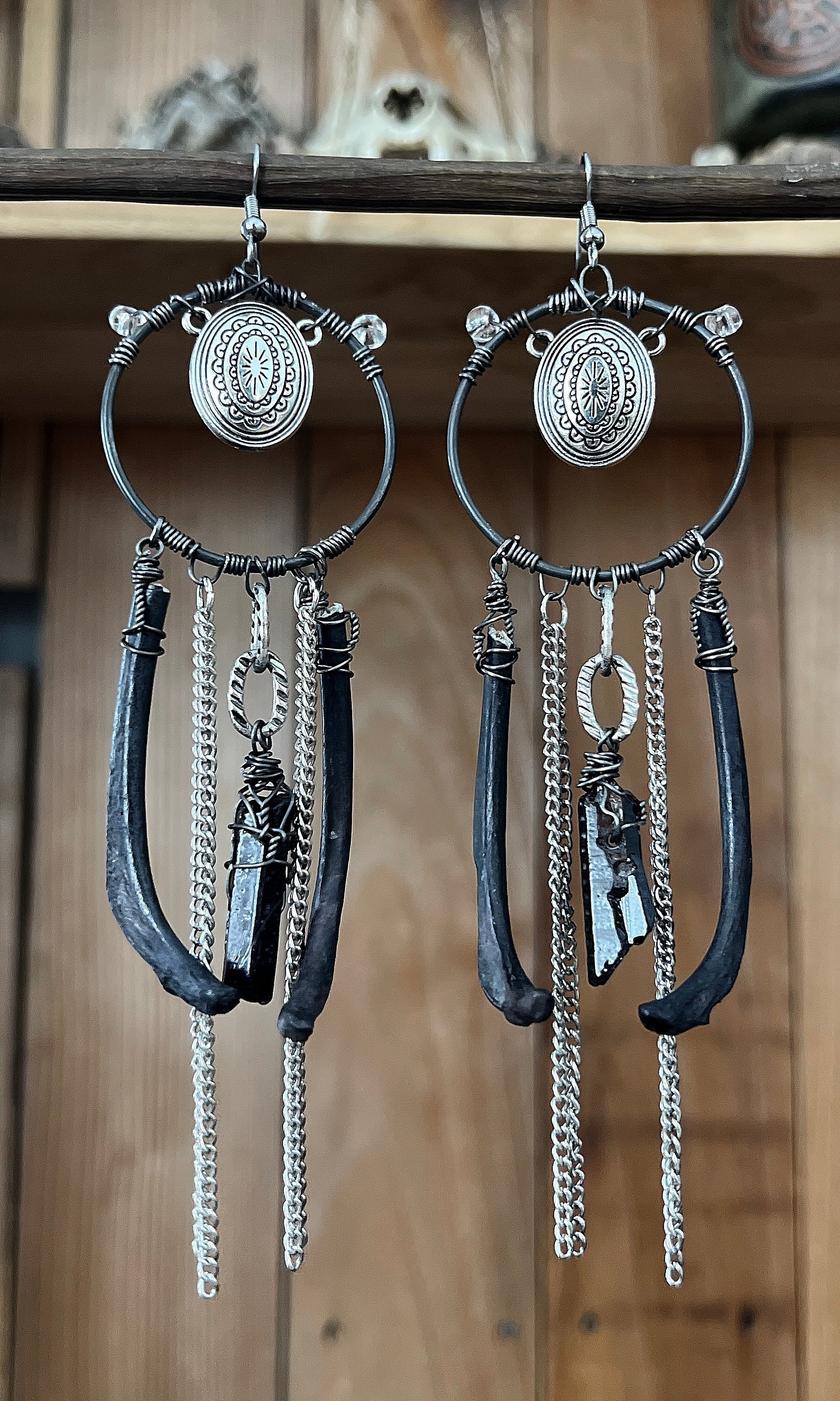 OOAK BLACK RIBCAGE CONCHO EARRINGS