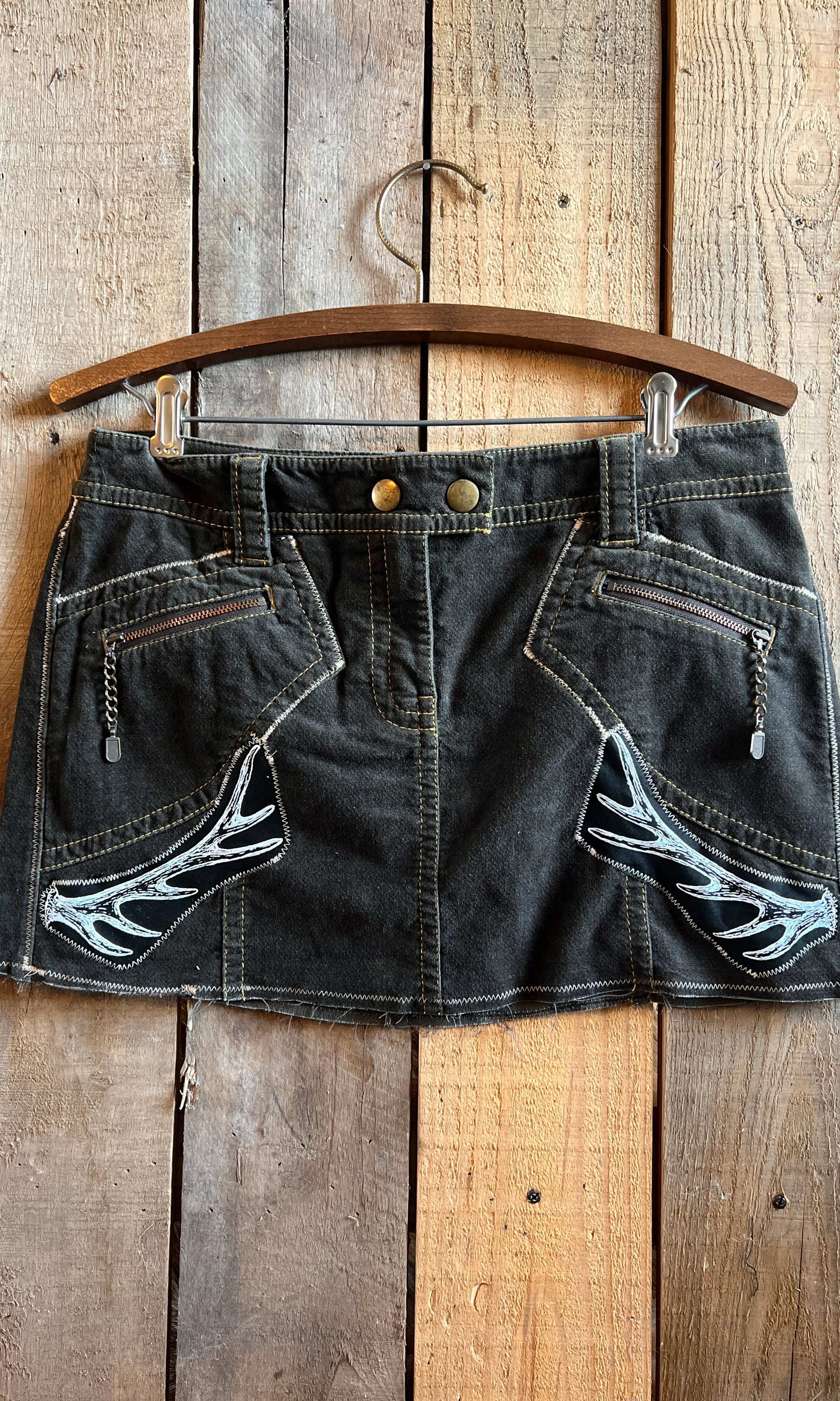 OOAK 32W ELK OLIVE ANTLER RUNIC SKIRT