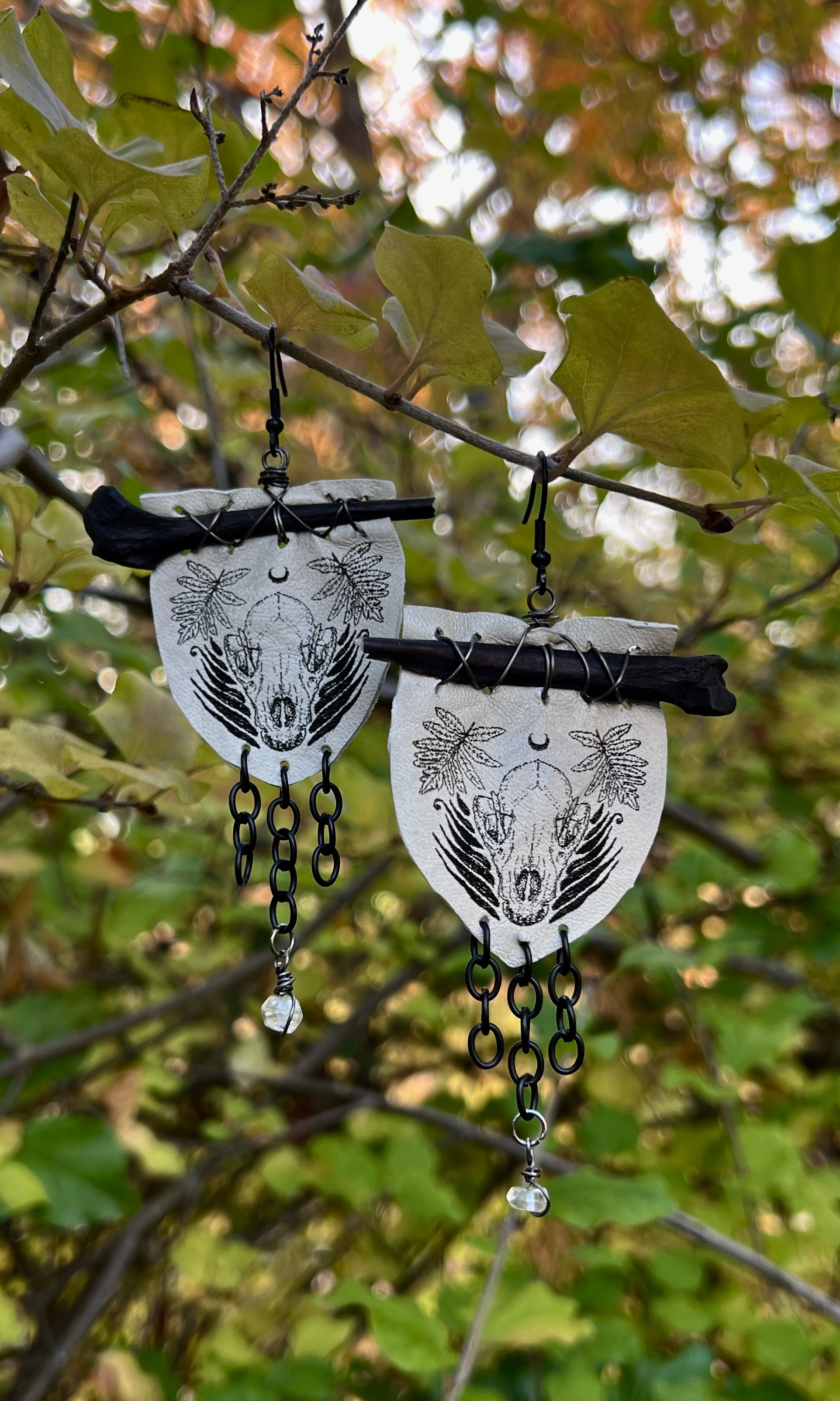 OOAK ETCHED LEATHER BONE AND QUARTZ EARRINGS